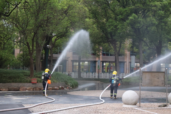 在正式演练之前,全体正副辅导员积极组织各班级召开消防安全主题班会,告知演练方案,指导学生掌握逃生技能与安全注意事项。此外,学保处还积极与属地消防中队联系,于4月8日邀请朱桥消防中队来校实地勘察,并在4月10日进行了实地模拟登高救援和水枪出水操作。
