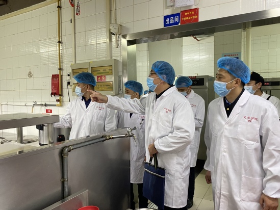(对学校食堂、特色店铺开展全面检查,并在学校指挥中心进行总结交流)