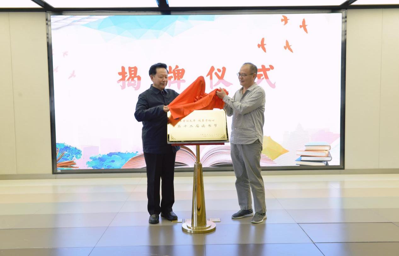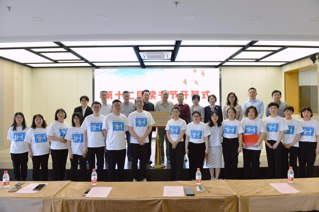 王友根副校长、陈颖书顾问共同为第十二届读书节揭牌,标志着活动正式拉开帷幕。领导嘉宾与图书馆馆员合影留念。