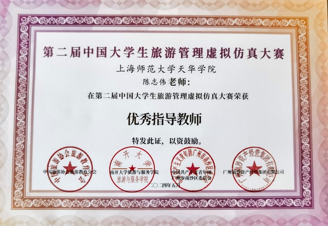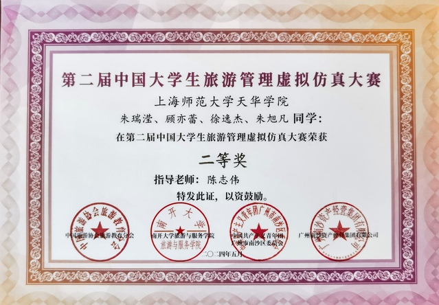 本次大赛从3月初开始筹备,经历了近2个月的初赛,我校代表队“上海师范大学天华学院-001队”成功晋级决赛,并于2024年5月15日前往广州市南沙区参加为期5天的决赛。在决赛期间,同学们与来自南开大学、山东大学、厦门大学、济南大学等985、211高校的参赛队伍同台竞技,我校参赛队伍克服了时间、距离的困难,承受住了心理素质和抗压能力的挑战,他们最终不负期望在本届大赛中荣获全国二等奖,指导老师陈志伟副教授也获得“优秀指导老师”的荣誉称号。