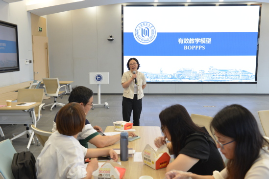首先,上官倩芡老师让大家以小组为单位,对于如何开展有效课堂教学进行讨论,并做分享。基于大家的讨论与分享,上官倩芡老师顺势提出了BOPPPS教学模型。强调其实大家都在无形中运用BOPPPS教学模型。BOPPPS具体指B(Bridge in导入),吸引学习者注意力的短“钩子”,解释课程的重要性/相关性,引发学生学习动机。O(Outcome目标),说明学习单元结束后学习者将了解、做什么或重视什么;使课程聚焦。P(Pre-Assessment前测),显示学习者对教学主题已有的知识;以适当的水平和速度为学习者授课;帮助教师调整课程以适应学习者的需要。P(Participatory Learning参与式学习),一系列有目的的活动;学习者可以以多种方式积极参与学习内容或任务。P (Post-Assessment后测),展示学习者学到了什么;帮助教师和学生确定是否达成学习目标。S (Summary/Closure总结),学习者可以反思/整合学习内容;强化学习;关联下一次课程。上官倩芡老师特别强调,一切教学活动的设计都是围绕教学目标进行,为教学目标服务。同时参与式学习贯穿教学过程始终。