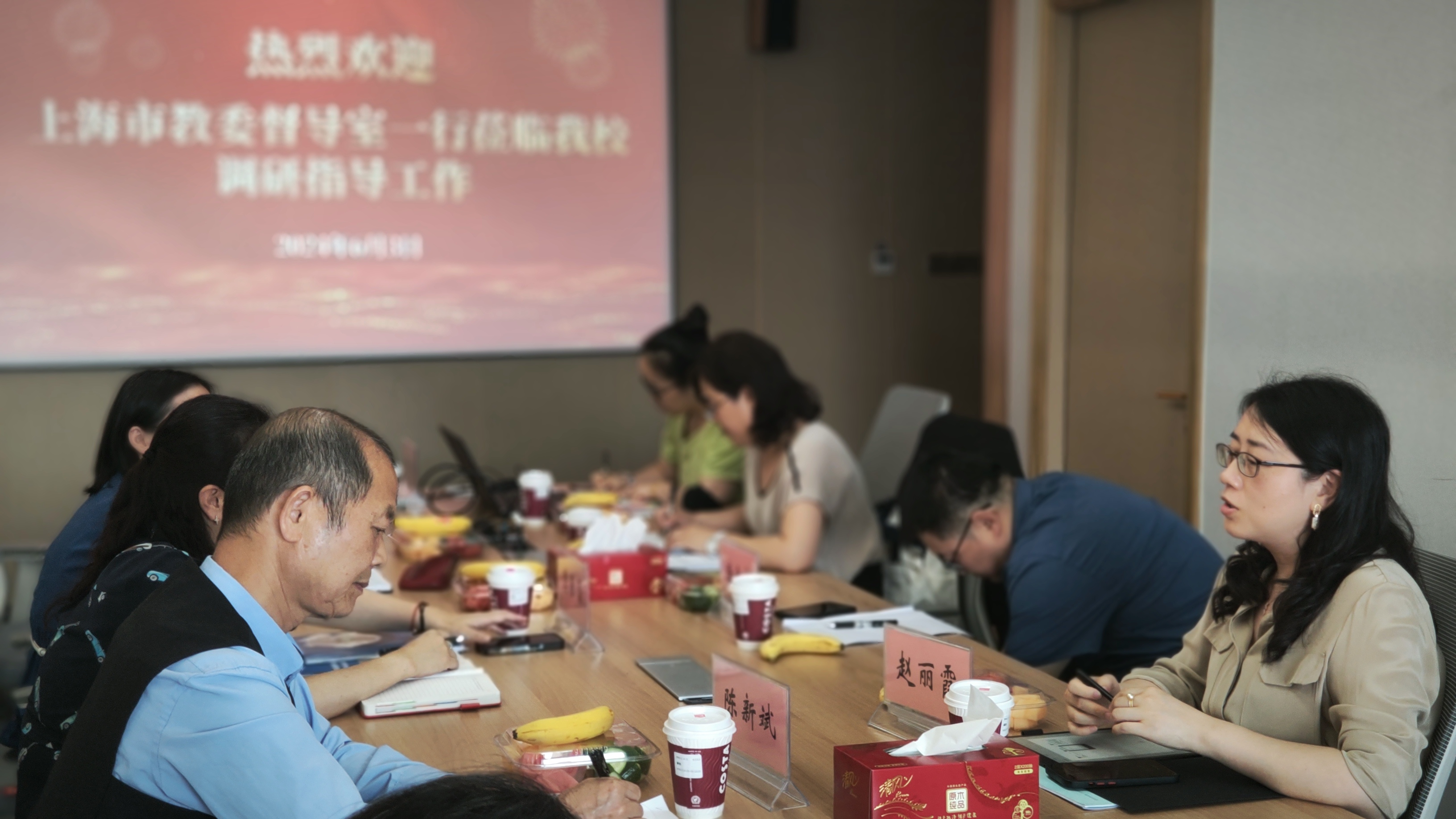 副校长龚春蕾对上海市教育委员会督导室一行表示热烈欢迎。会议期间由质量管理处围绕我校质量年报工作开展情况和第六版质量保障体系修订情况等主要工作,就学校本科教育教学常态化监测工作开展情况做了全面汇报。