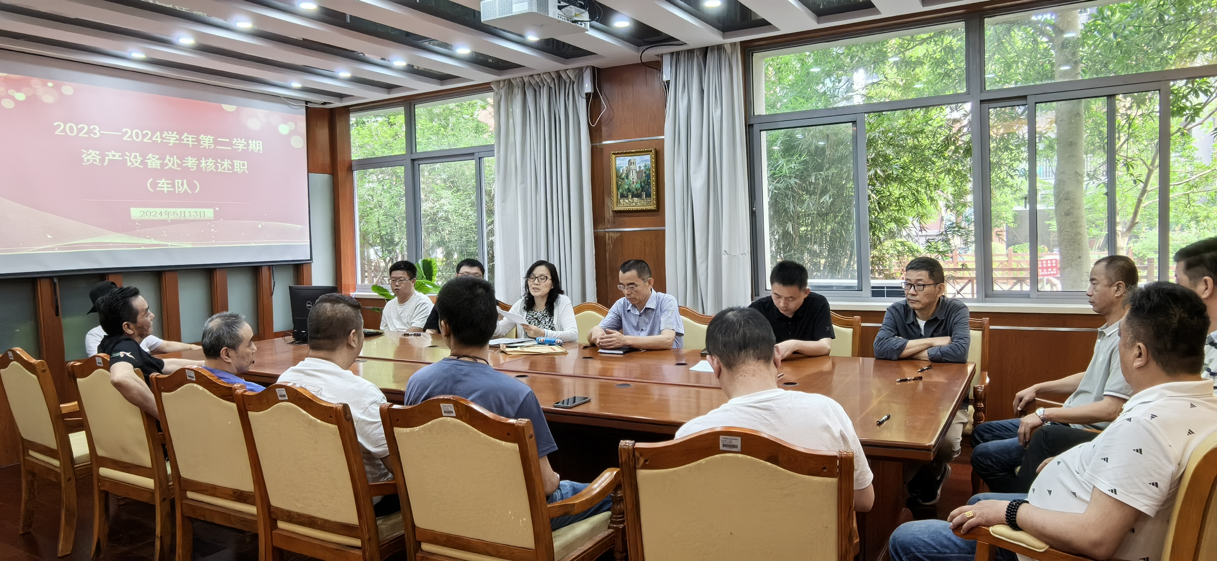2024年6月13日、14日,资产设备处根据学校统一要求,组织开展学期考核述职,资产设备处处长朱清,副处长董海霞、周建文全程参与并组织了考核。考核述职按照车队、资产与场所管理条线、图书馆三个条线分别组织实施。