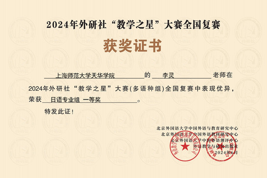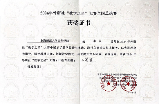 在比赛过程中,语言文化学院给予李灵老师大力支持;日语专业主任张丽珺老师全程跟进,对李灵老师的参赛进行了悉心指导。近年来,语言文化学院重视教学改革与创新,注重课堂教学质量的提升;定期召开教学研讨活动;组织学院教学技能交流赛、教师教案撰写大赛等,全面助力教师教学技能的打磨与成长。此次李灵老师的获奖展现了学院教学改革的成效,也充分体现了日语专业教师的风采。