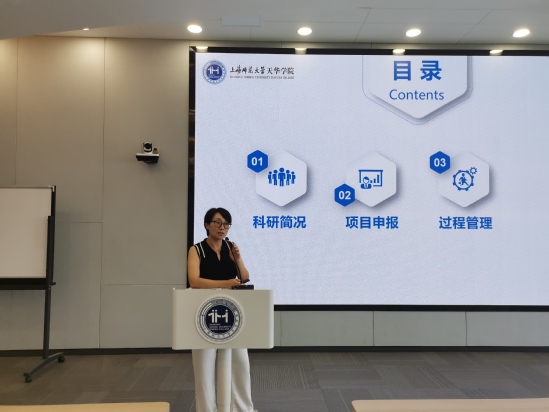 接下来,科研处常务副处长郑宁老师以《科研项目的申报》为题,向大家介绍了各校级、市级、国家级项目,从项目申报和科研奖励两个方面介绍了学校科研待遇,展示了学校对科研的重视、科研对教师的重要性,呼吁大家重视科研。郑处长也通过学院的积分与奖励制度激励新教师积极踊跃参加科研项目,为个人职业发展和天华学院发展,做出积极贡献。
