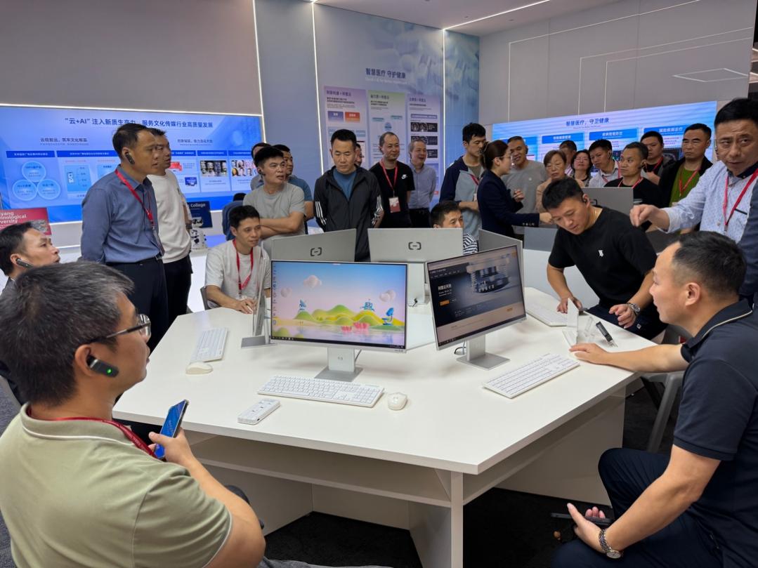 研学活动第一站来到杭州三墩镇灯彩街阿里巴巴云谷园区。学员们在阿里云科技展厅里学习了阿里云紧密围绕新质生产力的核心理念、自主研发的飞天云计算操作系统等技术创新和应用创新的突出成果,亲身感受了阿里云“通义大模型”操作运用,听取了阿里云《智能时代的数字化转型创新》的介绍报告。学员们对展厅的云电脑等新科技兴趣浓厚,纷纷主动尝试操作,还与企业总裁们还进行了现场互动交流,积极探讨了智能时代的数字化转型创新相关问题。