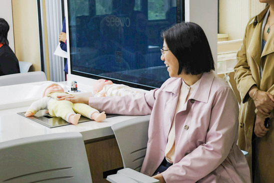 当前,学前教育向下延伸到0到3周岁,需要学生具备婴幼儿照护能力。托育实训中心引进了婴幼儿托育实训最先进的品牌,有婴幼儿照护实训台、人工智能婴儿(有芯片和感应原件的婴儿模型),育婴员岗位虚拟教学平台,托育课岗融合虚拟仿真教学平台等,供学生实训使用,未来也考虑申请育婴员考点和培训使用。远程实训基地观摩教室则配备了阿里钉钉的智能观摩云台系统,可以实时远程观摩基地幼儿园的教育教学活动。通过其AI功能,可以将活动视频进行录制、智能切分,并用关键词给视频做好标签,方便后续依据关键词调取视频素材。