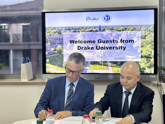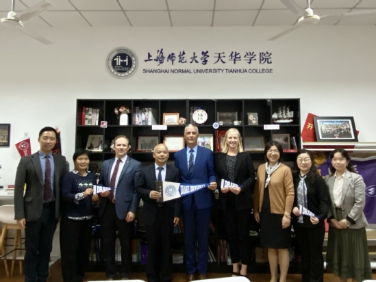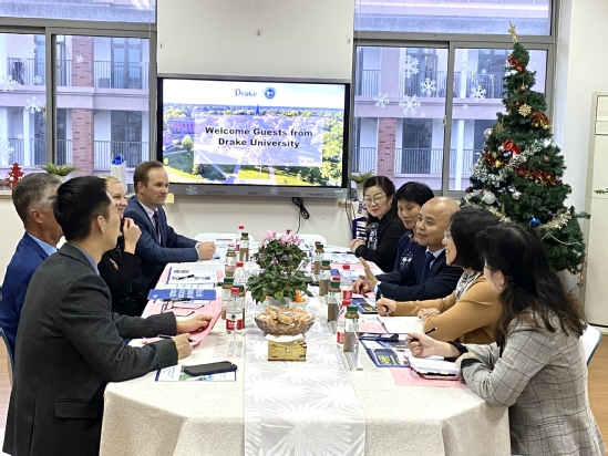 2024年10月27日,美国德雷克大学(Drake University)校长Marty Martin率领国际事务主任Annique Kiel、高级顾问Daniel Palm、以及Bruce Wang一行访问天华学院。天华学院校长叶才福、副校长兼商学院院长程葆青、校长助理兼国际交流处主任胡珍,以及国际交流处副处长张云、夏智源等热情接待了来宾。