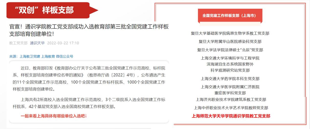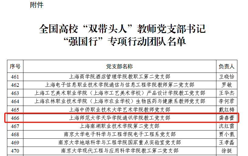 近日,教育部公布全国高校“双带头人”教师党支部书记“强国行”专项行动团队名单,我校通识学院教工党支部作为上海市高校58个教师党支部之一成功入选。这是该支部继2022年入选第三批“全国党建工作样板支部”后,在基层党建方面获得的第2项国家级荣誉。