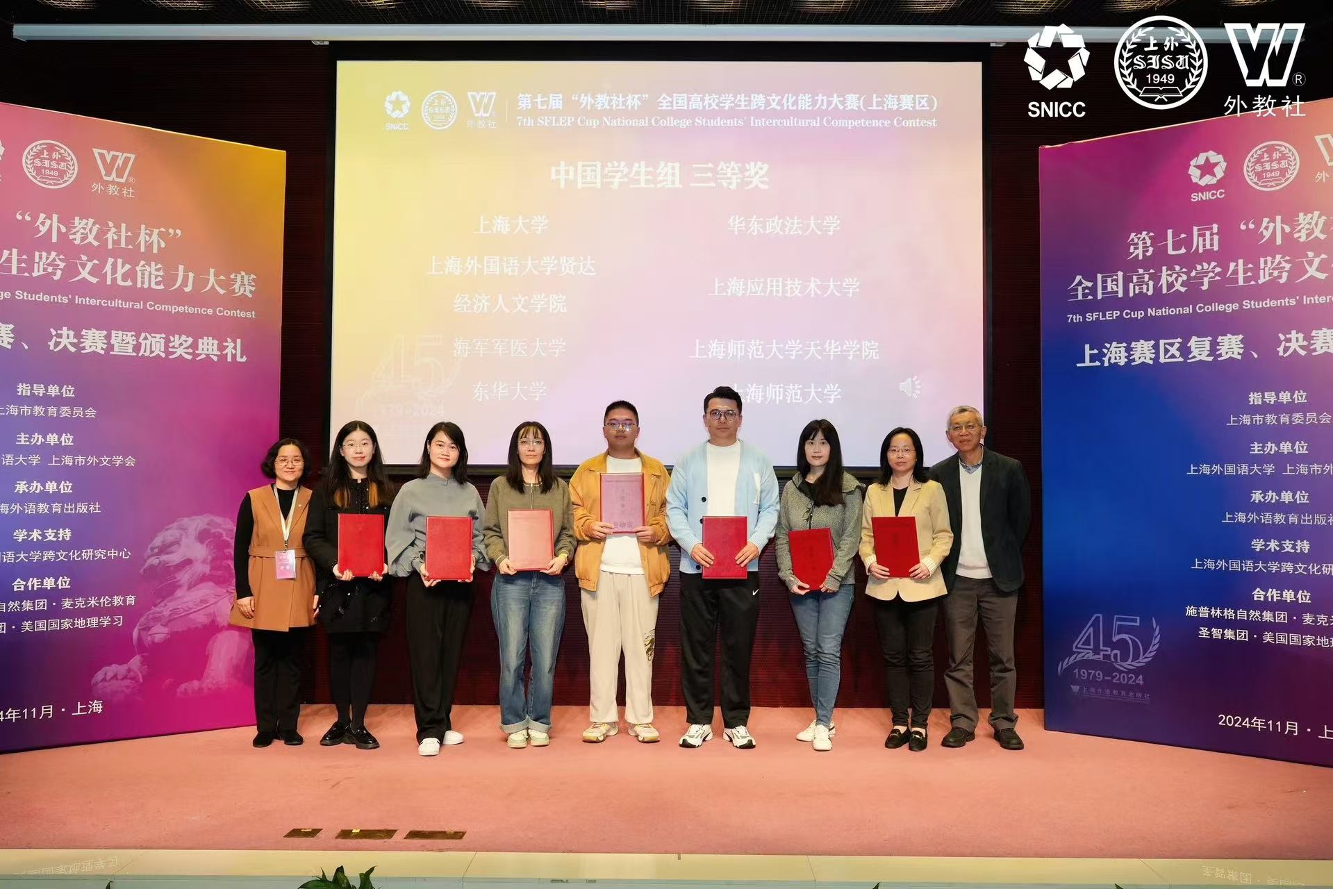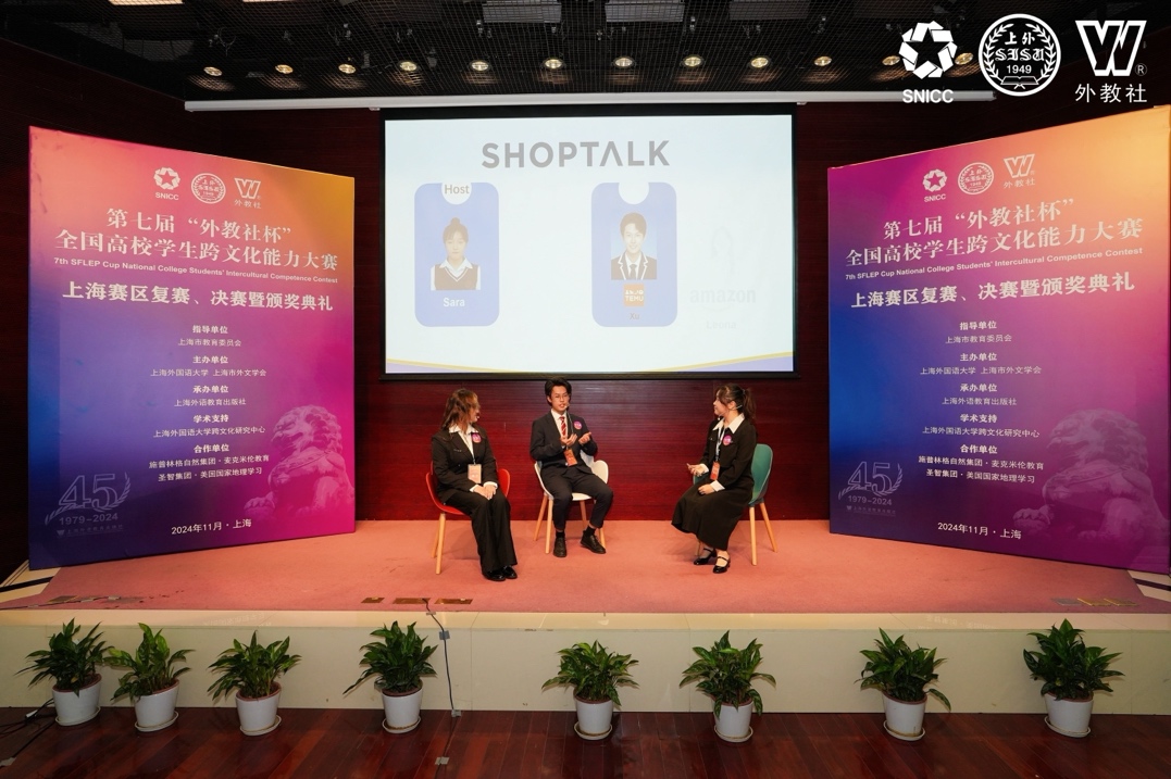 “外教社杯”全国高校学生跨文化能力大赛自2023年入选“全国普通高校大学生竞赛榜单”以来,已成为外语类学科竞赛的权威三大赛事之一,为全国高校师生提供了一个展示跨文化交流能力和交流跨文化教学经验的重要平台。此次赛事,来自复旦大学、同济大学、上海外国语大学等上海知名高校的英语专业和非英语专业选手同台竞技,为展现当代大学生的跨文化能力提供了一个高水平的交流平台。