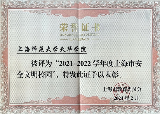 根据《上海市教育委员会关于开展2021-2022学年上海市安全文明校园申报推荐工作的通知》(沪教委青〔2023〕16号)要求,经过自评、验收及公示等一系列流程。学校成功获评2021-2022学年度上海市安全文明校园荣誉称号。