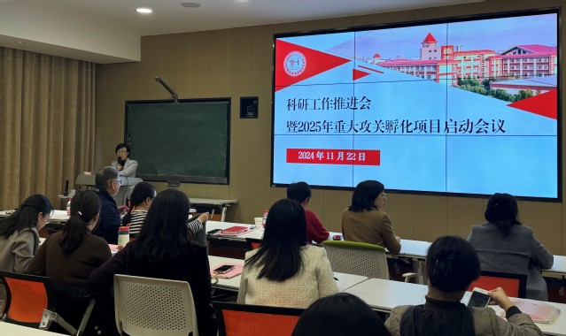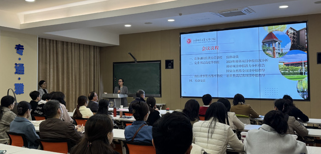 常务副校长龚春蕾教授作致辞动员。龚春蕾基于2024年度科研成果申报的初步统计数据,肯定了全校教师在科研方面的投入与进步。龚春蕾指出,未来五年,科研工作对于个人和学校都特别关键。一是攀登硕士专业学位点培育高峰,全校的科研实力、师均科研成果产出、师均科研经费是最重要的指标;二是面临独立学院转设和本科合格评估,根据师生比1:18硬指标,专任教师高级职称的占比要求,理工农医转业对文商艺管的挤压等客观情况,教师课时饱满程度会下降,需要通过科研工作量来弥补;三是硕博士青年教师应把握住科研黄金期,目前统计有53人计划申报2025年重大攻关孵化项目,希望大家保持良好的科研状态,实现科研的持续增长。因此,召开本次科研工作推进会议正当其时,督促教师根据2024年度的科研成效,认清实力和短板,早定赛道早做谋划,为明年规划新的科研任务和目标。