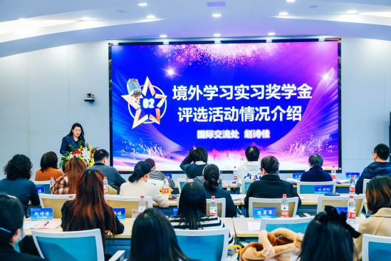 随后,由国际交流处教师赵诗佳进行境外学习实习奖学金评选活动情况介绍,赵老师详细介绍了2024-2025学年境外学习实习奖学金的评审工作进展。此次奖学金评审工作于2024年11月27日启动,经过学生自荐、学院和专业推荐,共有68人次提交申请。其中,6名学生申请“出国语言奖学金”,29名学生申请“境外学习奖学金”,19名学生申请“境外卓越奖学金”,14名学生申请“境外实习奖学金”,希望通过同学们答辩的精彩表现,展示他们在境外学习中的成长与收获。