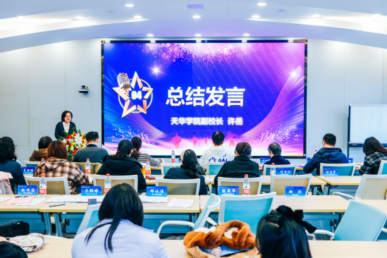 会议最后,天华学院副校长许岳发表了总结讲话。她高度评价了参与境外学习实习的同学们,称他们是“勇敢专注的学习者、文化的积极传播者、国际交流的推广者”。许校长鼓励更多的同学积极参与多元化的学习与实践活动,传播留学正能量。同时,她强调,学校将群策群力,努力将高质量的国际项目推广至每一位天华学子,助力他们在国际舞台上展现风采。