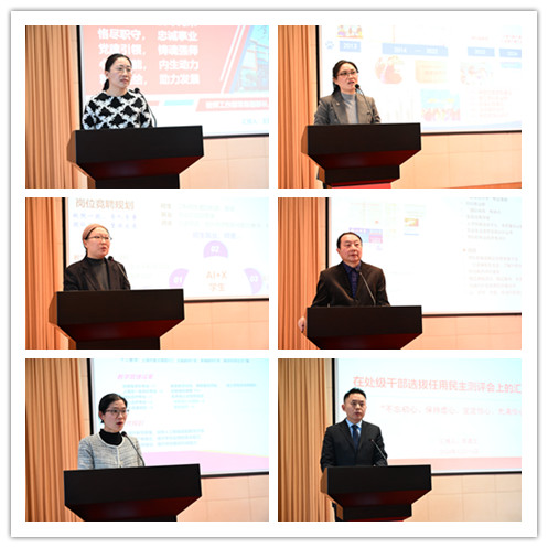 会上,12位拟提拔正处级干部候选人依次上台进行个人演讲,他们围绕个人基本情况、工作业绩、竞争优势、未来工作规划等方面进行了阐述,充分展示了各自的综合素质和领导能力。接着,参会人员审阅71位拟任用处级干部的书面报告,并根据他们的表现及日常工作情况,结合学校发展需要和岗位实际需求,以无记名投票的方式进行民主测评。