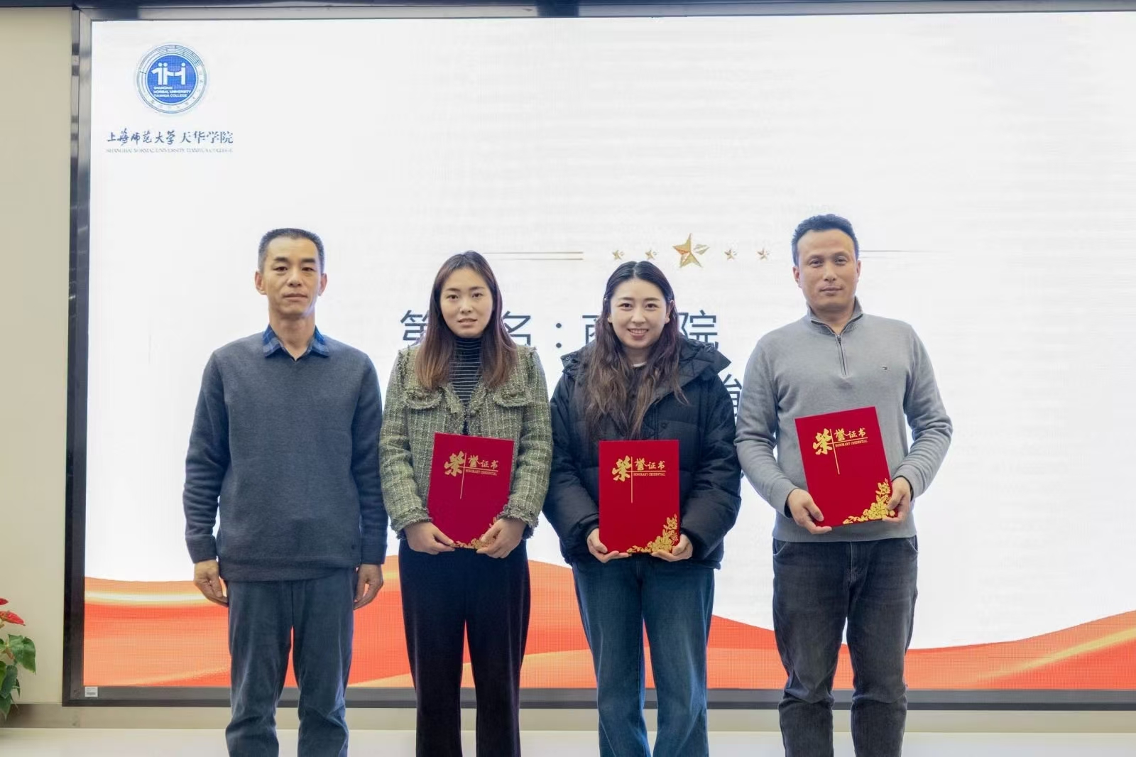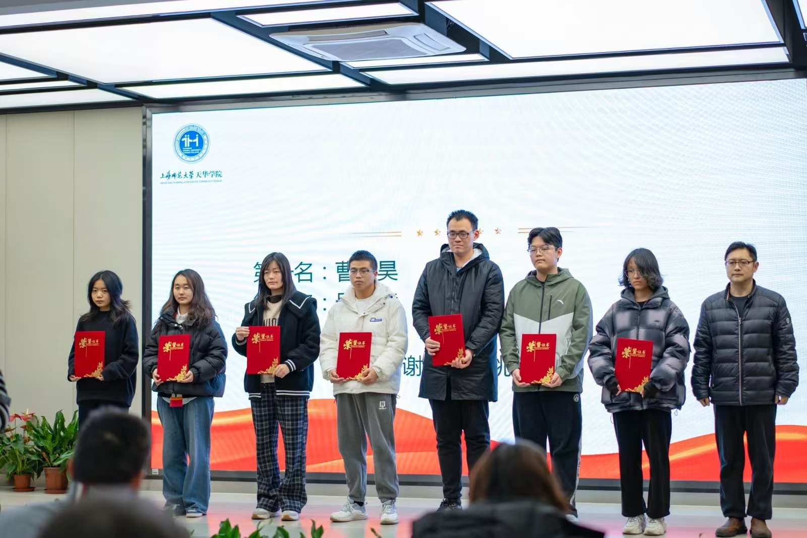 (凌旭峰老师为“知网杯”上海市高校信息资源发现大赛前三名颁奖)