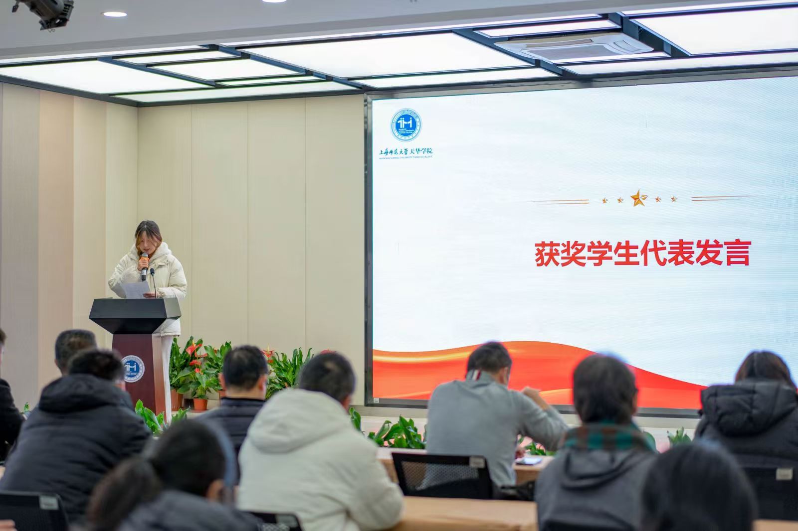 新入职老师Cecily Meredith Hurst 和大一新生陈辰同学上台分享了她们的阅读心得和获奖感受,表达了对图书馆和学校领导的感激之情,同时也表示将继续保持阅读的习惯,不断提升自己的综合素质。