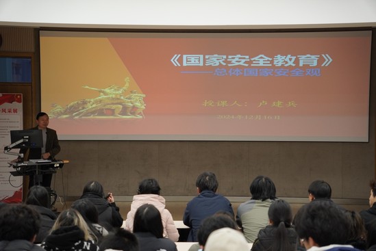 12月16日,在我校日华楼103“活力课堂”教室座无虚席,来自语言文化学院24汉语言1、2、3班,日语1班的115位同学,正认真听讲国家安全教育公共基础理论授课。