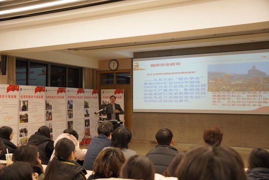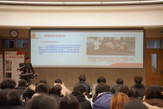 卢老师从颜色革命讲起,特别是结合乌克兰橙色革命的实际,对各国颜色革命的背景层层深入,重点剖析了乌克兰橙色革命与美国黑手之间的关系,并与同学们一起具体分析美西方发动“颜色革命”的形式、目的、方法、步骤、主体等等问题,从而进一步加深了同学们认识开设国家安全教育公共基础课的目的和意义。