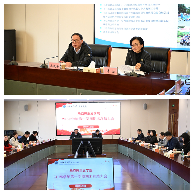 2025年1月3日下午1点,马克思主义学院在明华楼5楼会议中心召开2024-2025学年第一学期期末总结大会,校党委书记高建华、党委副书记许岳出席,会议由马院副院长丁彩霞主持,马院全体教职员工参会。