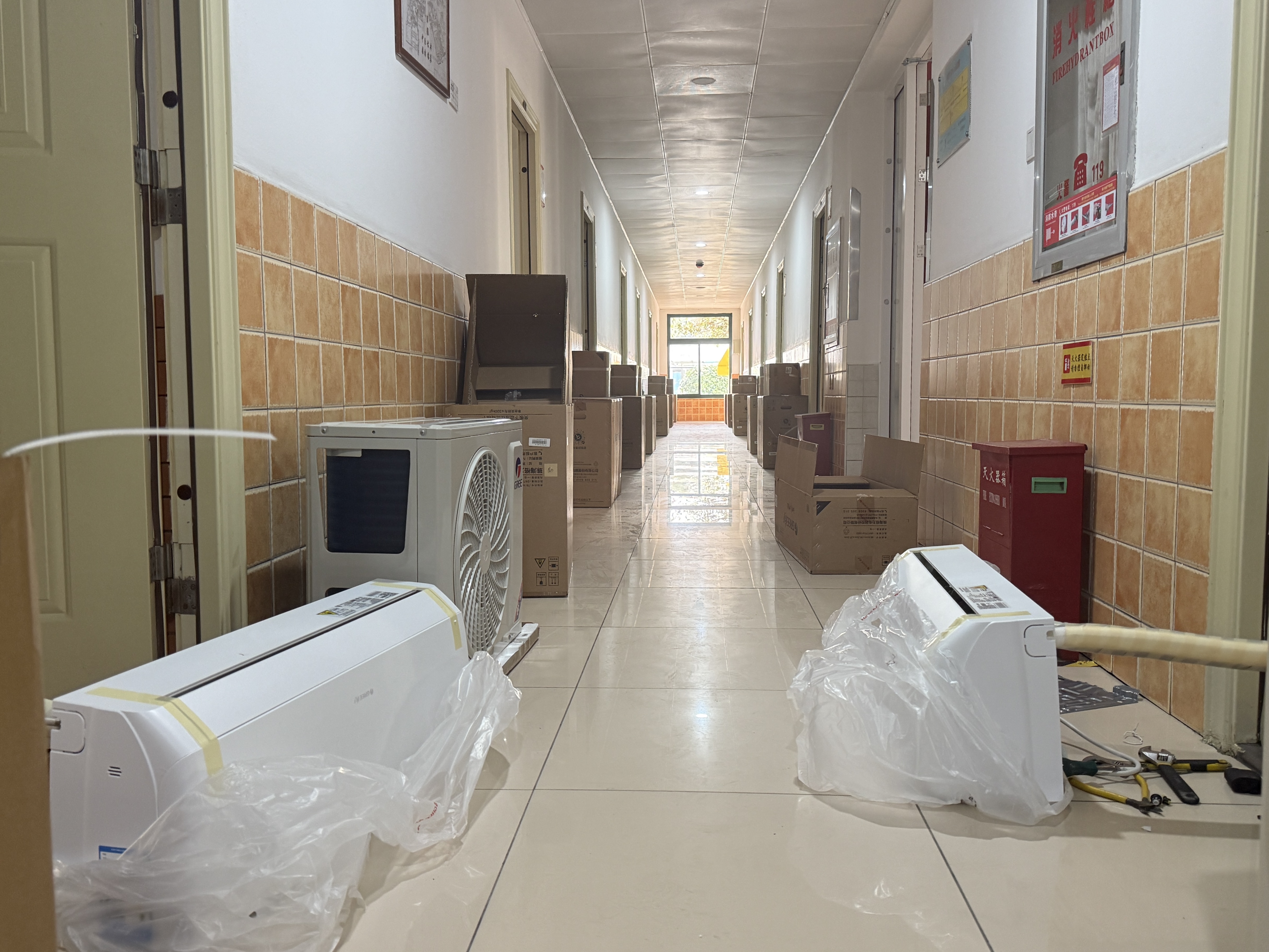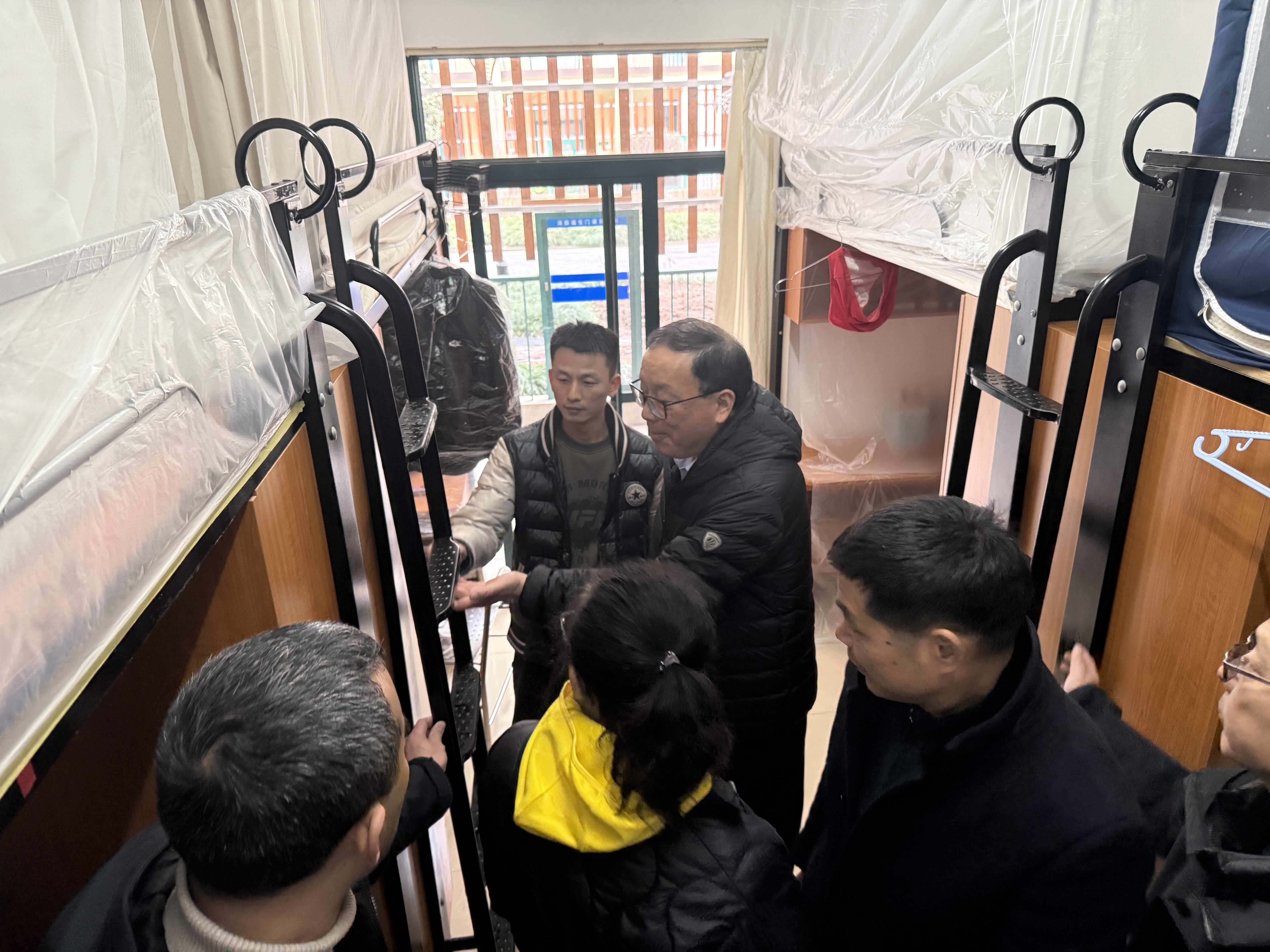 在生活区,检查组深入学生宿舍,对宿舍楼内控电、控水设施设备进行了检查,同时也对现场有施工任务的员工进行了安全提醒。今年假期学校后勤对部分楼宇的空调进行了换新,以提升学生在校期间的居住舒适度。同时,考虑到学生日常起居的细微需求,对床位的扶梯进行改进,点滴行动尽显人文关怀。