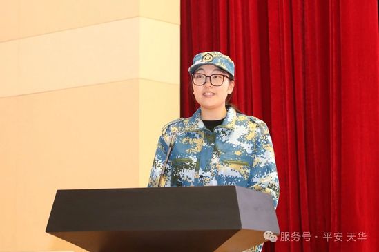 教育学院 24(中本贯通)1班朱灵怡作为学生代表进行发言。她铿锵有力的言辞中表达了昂扬的志气、严谨的态度,激励同学们能懂得自律、自强,在军训中文明思想、增强体魄,用最积极昂扬的面貌来迎接已经即将到来的挑战。