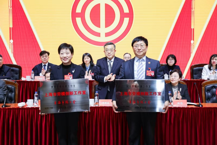 开幕式上,上海市人大常委会副主任、党组副书记,上海市总工会主席郑钢淼为上海市劳模创新工作室领衔人代表授牌。
