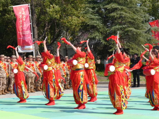 在欢送仪式上,学校腰鼓队为即将踏上军旅征程的新兵们献上了一场精彩纷呈的慰问演出。腰鼓队员们身着鲜艳服装,腰间系着红绸鼓,精神抖擞地列队而立。随着音乐节奏的渐进,一阵整齐有力的鼓声骤然响起,如春雷般震撼人心,点燃了现场的热烈气氛,也鼓舞了新兵们的士气。