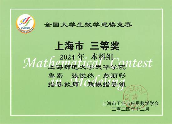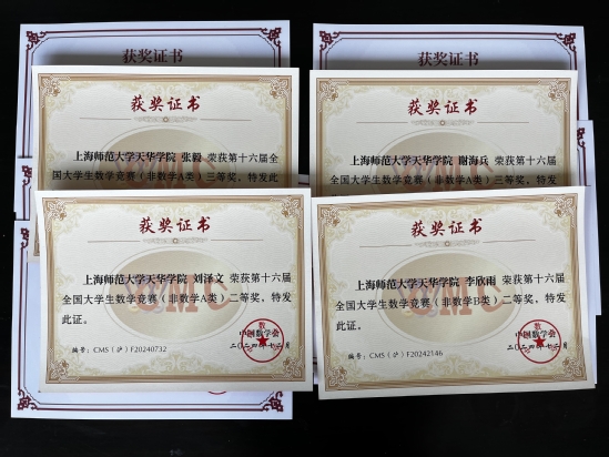 近日,2024年全国大学生数学竞赛与全国大学生数学建模比赛结果相继揭晓。我校学子表现亮眼,参赛成绩实现历史性突破,创下近五年参赛最佳纪录。在本届全国大学生数学竞赛中,来自人工智能学院和商学院的三位同学获得全国二等奖,三位同学获得全国三等奖,三位同学获得上海市三等奖。全国大学生数学建模比赛中, 一组同学获得上海市三等奖。