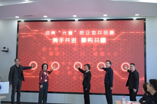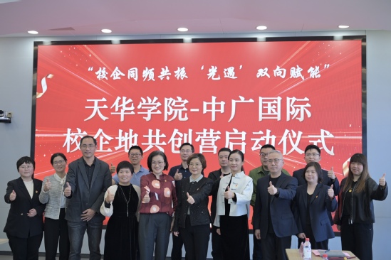 朱琴、许岳等领导共同为天华学院—中广国际校企地共创营启动揭牌。天华学院与嘉定工业区党工委、中广国际等校地企三方将继续开展深入合作,共同推进校企地合作项目的建设。通过常态化共商共建机制,推动教育、新经济与文化创意产业的深度融合,切实搭建起高校和在线新经济企业信息共享、人才培养、资源互动的优质平台,为大学生提供更多学习和成长的机会。