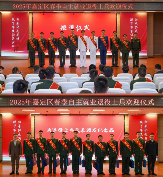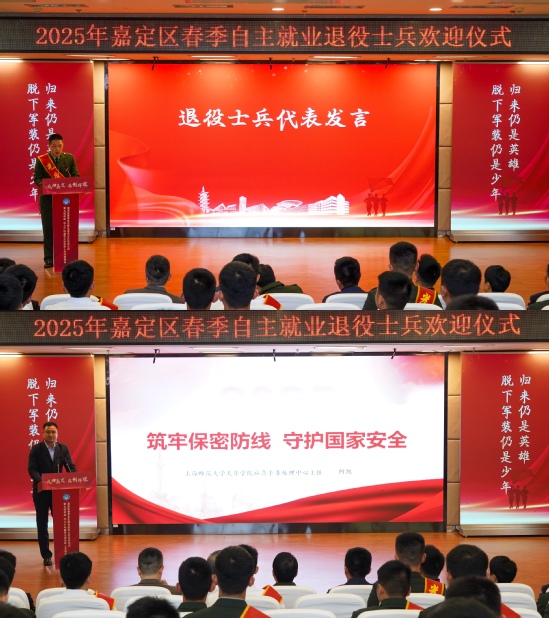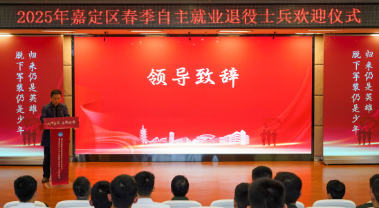 在庄重的欢迎仪式上,苏亮副局长代表嘉定区退役军人事务局向退役士兵致欢迎辞,提出“三要”寄语:一要加快融入区域发展新格局,二要强化数字化时代就业竞争力,三要永葆军人本色争当建设先锋。