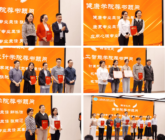各学院的院长职能及处室领导分别为人工智能学院、教育学院、商学院、艺术设计学院、语言文化学院、健康学院的23名荐书顾问颁发聘书,图书馆将联合各学院的专业主任开展精准化的学科服务。
