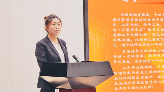 图书馆常务副馆长许树梅详细介绍了本次读书节的活动安排,包括第九届教职工“爱朗读”大赛、夜读计划—主题式阅读体验、“你挑书,我赠书”活动、知网AI与DeepSeek携手:学术研究的创新之道讲座、轻松追踪科研热点—人工智能课题英文文献检索及优质期刊推荐、“你选书,我买单”新书现场闪借、第四届图书馆数据库检索大赛、走进博物馆里的大国工匠、2025“博看杯”上海市诵读大赛天华赛区总决赛、一本书的诞生—解锁图书出版密码——助力高校教师成长讲座、舞台剧《木兰辞》、第四届“青春天华”诗词大会、2025“阅途杯”讲书人短视频创作大赛等十三项活动。