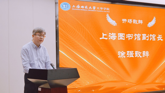 上海图书馆副馆长徐强的致辞为读书节活动带来文化基因的远航动力,他指出,即便在短视频风靡、AI算法推送盛行的当下,图书馆依然保持着其无可替代的价值,它如同信息的灯塔,精准筛选海量资讯,更是深度思考的温床,他从三个方面分享了图书馆的意义,第一,破界,跨越认知边界的星辰大海;第二,扎根,让知识在生活中成长;第三,对话,构建时空交织的共读生态。