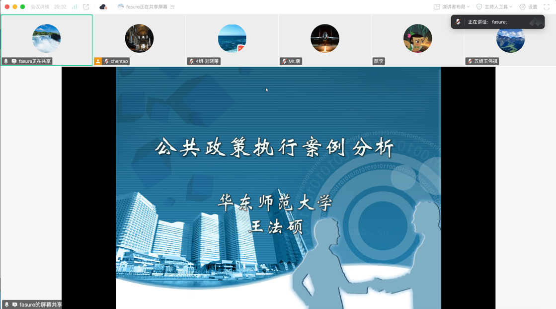 3月起,公共管理与公共治理专题模块课程转入线上。3月1日,华东师范大学王法硕教授以《公共政策执行案例分析》为题,通过“孙志刚事件”“新医改决策”等经典案例,深度解析公共政策议程设置、制定与执行的逻辑,引导学员掌握“问题诊断—方案设计—效果评估”的政策分析框架。