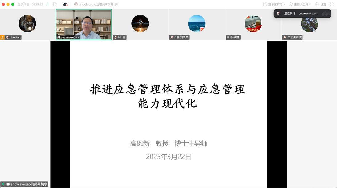 3月22日,华东师范大学高恩新教授聚焦《推进应急管理体系与应急管理能力现代化》,从“危机生命周期理论”切入,分析上海疫情防控、郑州暴雨灾害等实战案例,详解“预防-准备-响应-恢复”四阶段应急管理体系,强调“平战结合”机制在基层治理中的应用,提升学员风险研判与突发事件处置能力。