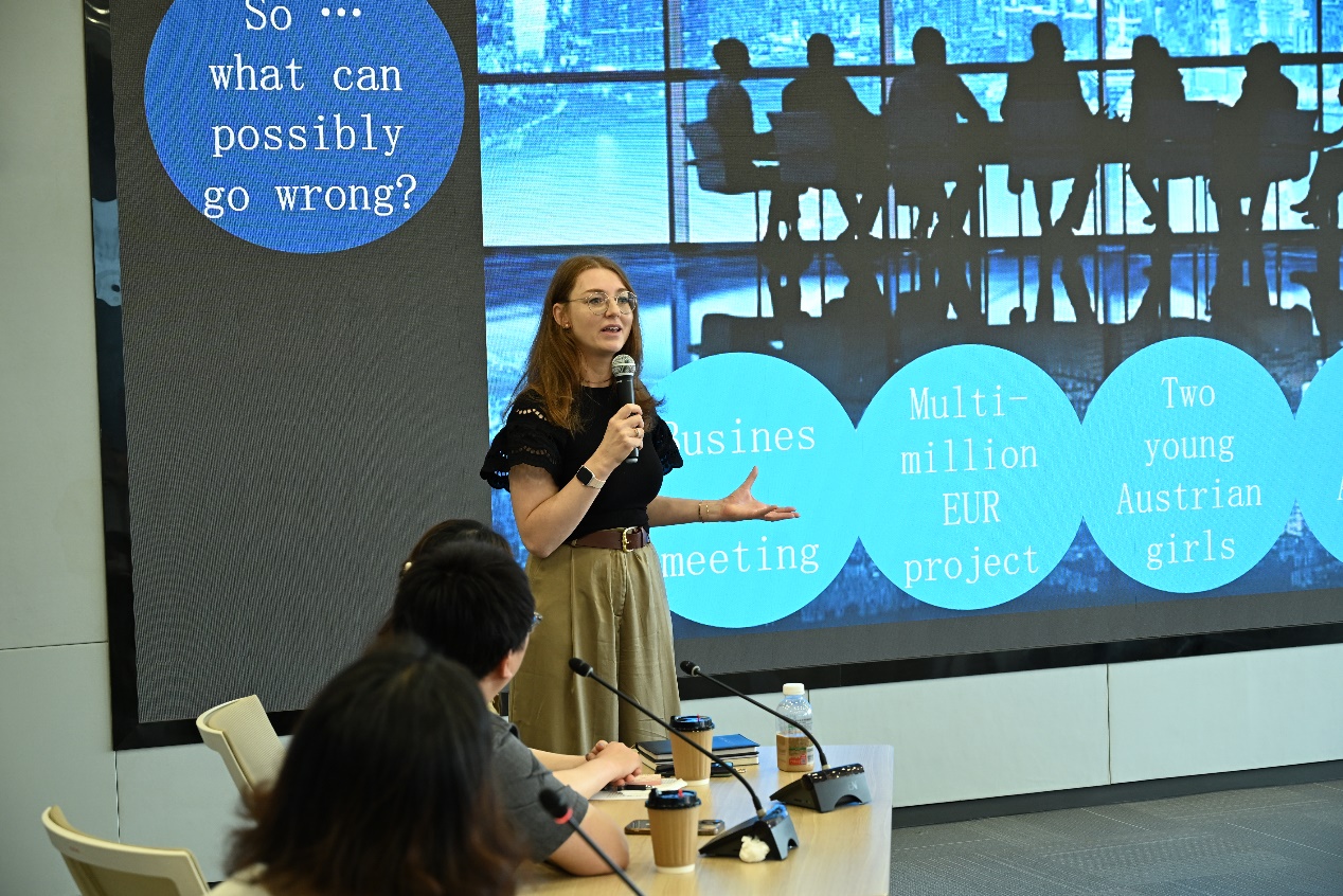 首先,主讲嘉宾Deniela为大家做了跨文化交际能力的简要介绍。我们的世界变得越来越多元文化。因此,有必要熟悉不同的行为和习俗,以提高我们的跨文化交流技巧和能力。但是跨文化交流意味着什么呢?它是因国籍、年龄、工作方式、性别、民族、种族等而存在文化差异的人们之间的交流。它可以是语言的,也可以是非语言的。尽管我们可以了解文化,以便更好地适应和适应他人的个人和文化偏好,但没有黄金法则可以保证跨文化交际的成功。此外,可以发展一些技能以提高跨文化沟通技巧,如适当的动机对所有交流都有重要意义,尤其是在跨文化交流方面,因为它们可能非常具有挑战性。