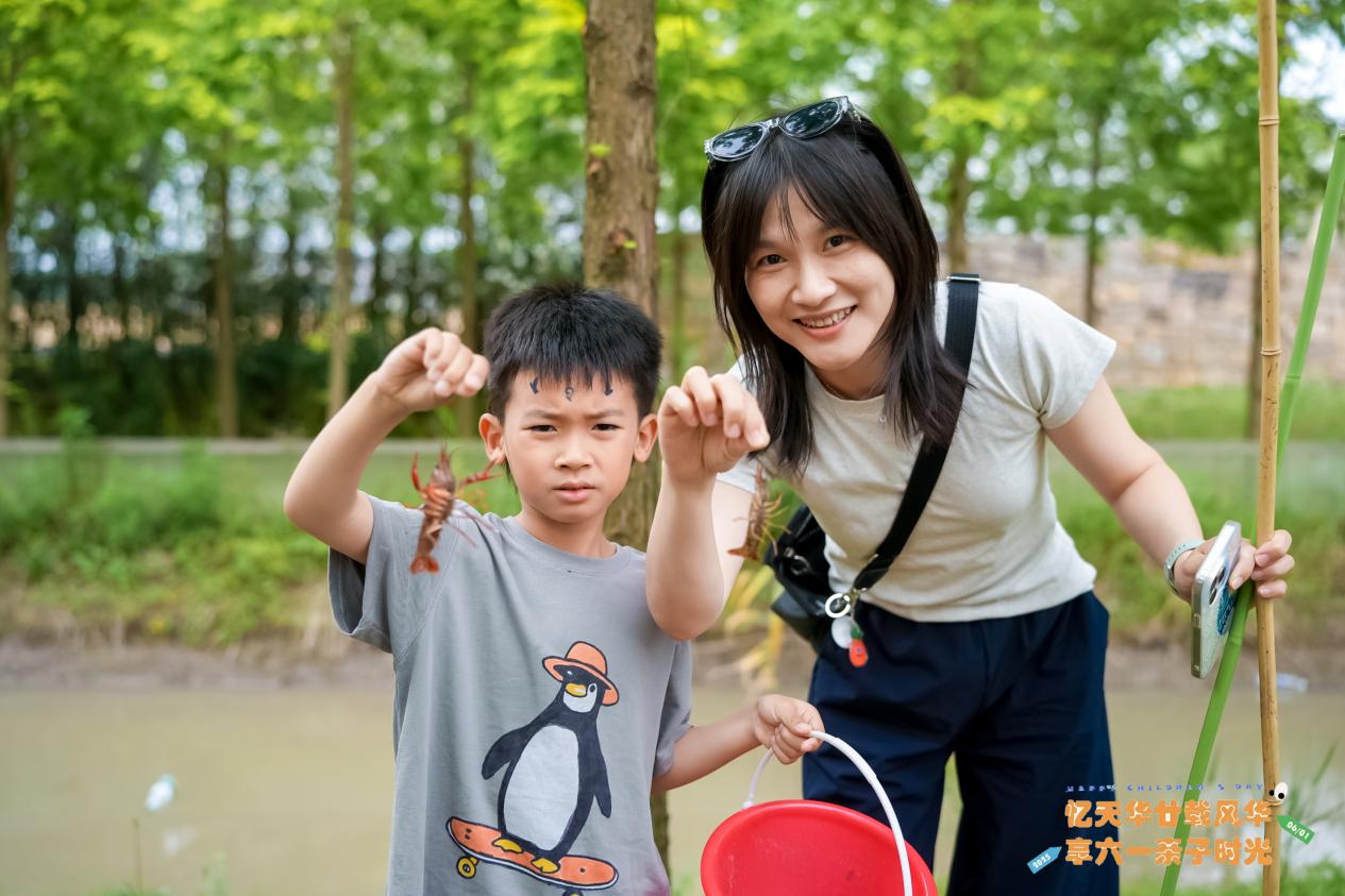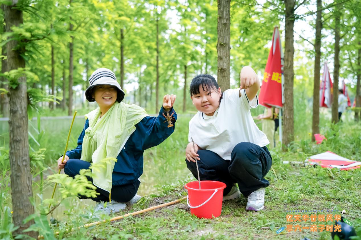 随着活动的开启,营地内顿时充满活力,“趣钓小龙虾”环节中,孩子们手持钓竿,屏息凝神地等待“战利品”,家长则化身“教练”指导技巧,现场此起彼伏的欢呼声与掌声交织成一片。