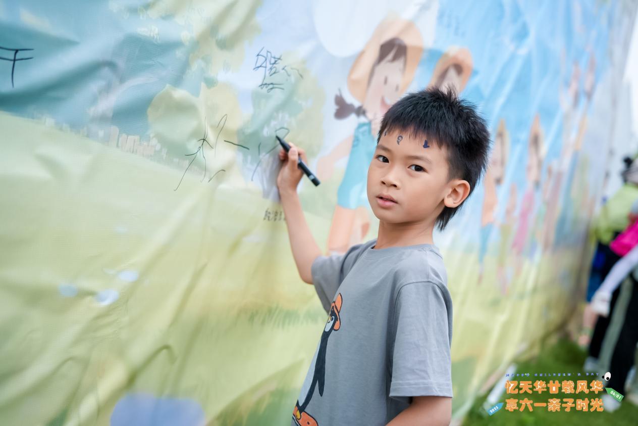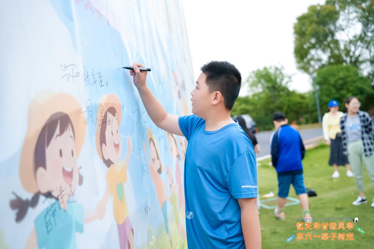 上午9点,参与活动的家庭陆续抵达营地。在签到墙前,家长与孩子们合影留念,定格童真笑颜。