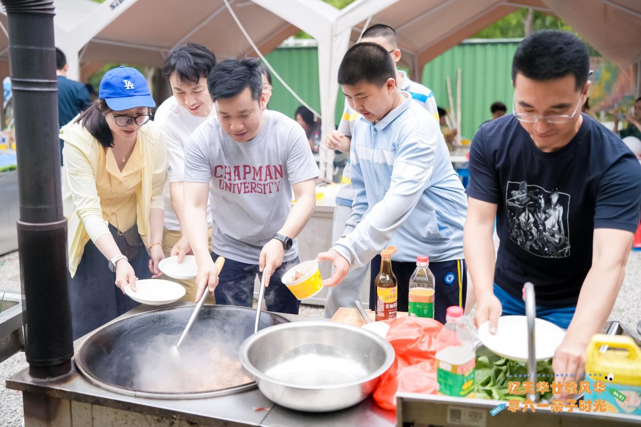 中午时分,活动进入温馨高潮——“大手牵小手”埋锅造饭。各组家庭分工明确,拾柴生火、洗菜备料、掌勺烹饪……孩子们在家长的指导下体验劳动乐趣,从生疏到熟练,最终端出一道道充满“家味”的菜肴。野炊区香气四溢,家长与孩子围坐共享美食,在烟火气中传递温情,不少家庭表示“这是最难忘的一顿午餐”。