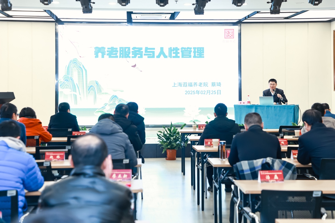 2月25日下午,上海遐福养老院院长蔡琦受邀进行线下授课,以《养老服务与人性管理》为主题,结合行业实践与前沿思考,为学员带来了一场兼具深度与温度的专业分享。蔡琦院长以 “未老不知老,老者难言之。伺老先尊老,助老须知老” 为引,强调养老服务的本质是 “人性管理”。蔡琦院长从宏观与个体双视角出发,指出中国养老问题面临农耕文明观念与工业文明现实的冲突。他认为个体应在生长期、成熟期、衰老期全周期中,同步规划教育、职业与养老,未来养老行业需以 “人性化服务” 为核心,融合科技、文化、艺术等元素,构建 “有温度、有尊严、有价值” 的新型养老生态。