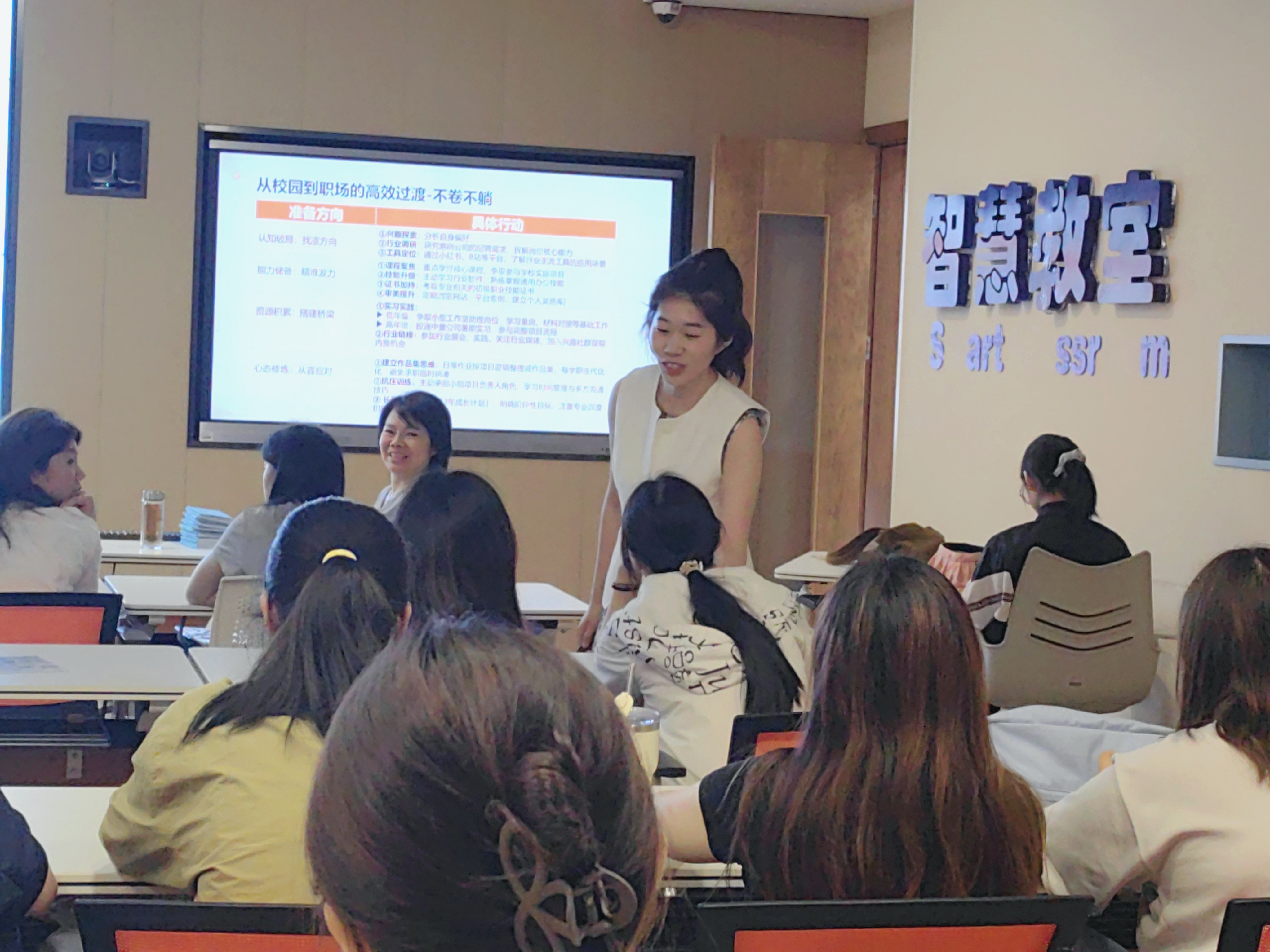 罗震老师以自身经历为蓝本,为同学们讲述了一段精彩的职业成长历程。她从热风管理培训生起步,历经销售员、店长、管理组长、运营专员等岗位,在短短8年间稳步晋升至区域总经理,分管多省市业务。她的职业轨迹,是脚踏实地、持续成长的生动写照,为同学们树立了榜样。