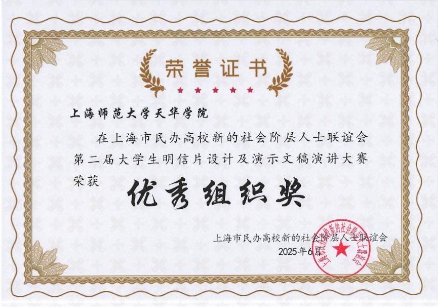 2025年6月6日,上海市民办高校新的社会阶层人士联谊会(以下简称“新联会”)第二届大学生明信片设计及演示文稿演讲大赛颁奖典礼在上海外国语大学贤达经济人文学院隆重举行。