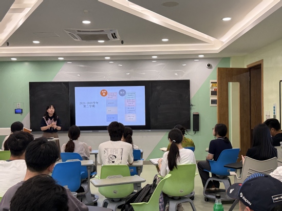 行前会还特别邀请了拥有丰富海外学习经验的优秀学姐2025届毕业生周怡韵进行分享。她结合自身经历,介绍了境外学习生活的准备要点,并在互动答疑环节耐心解答了学弟学妹们的疑问,帮助大家明晰认识、充分准备。