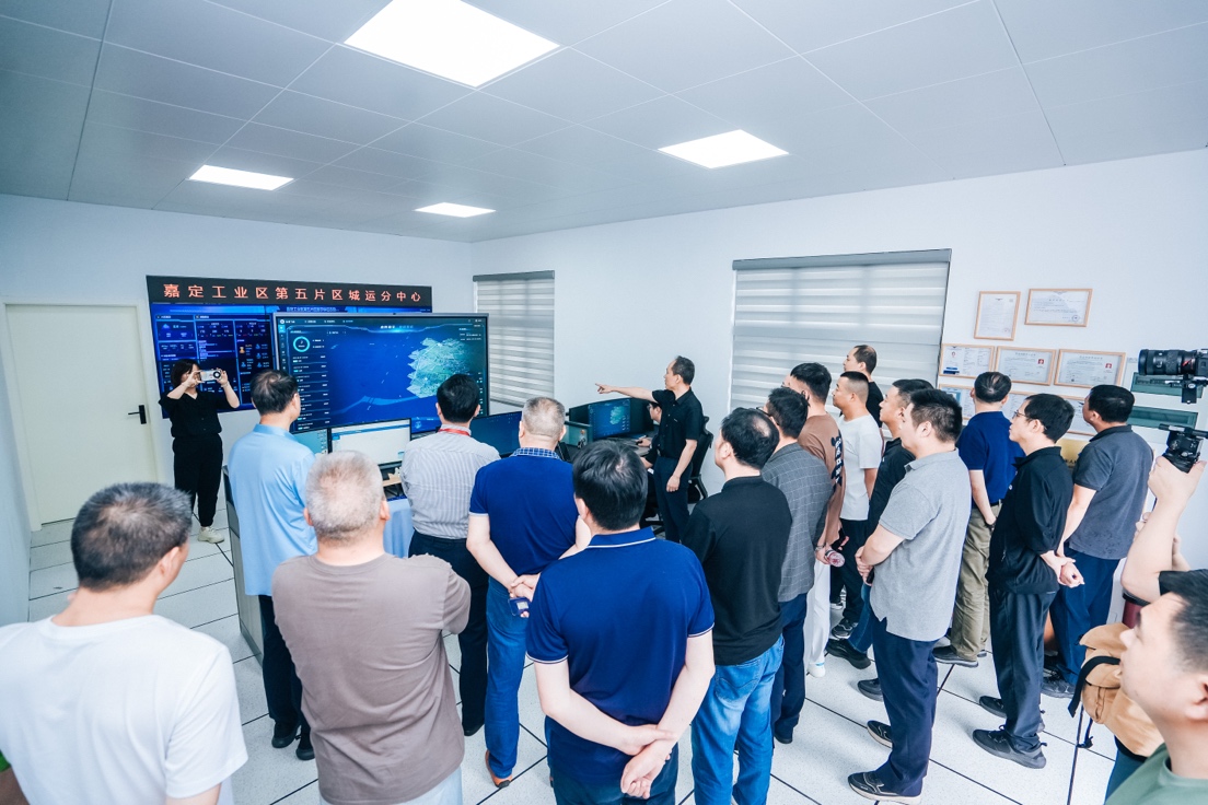 (转业军官们在上海智慧飞治指挥中心无人机起飞平台参观演示)