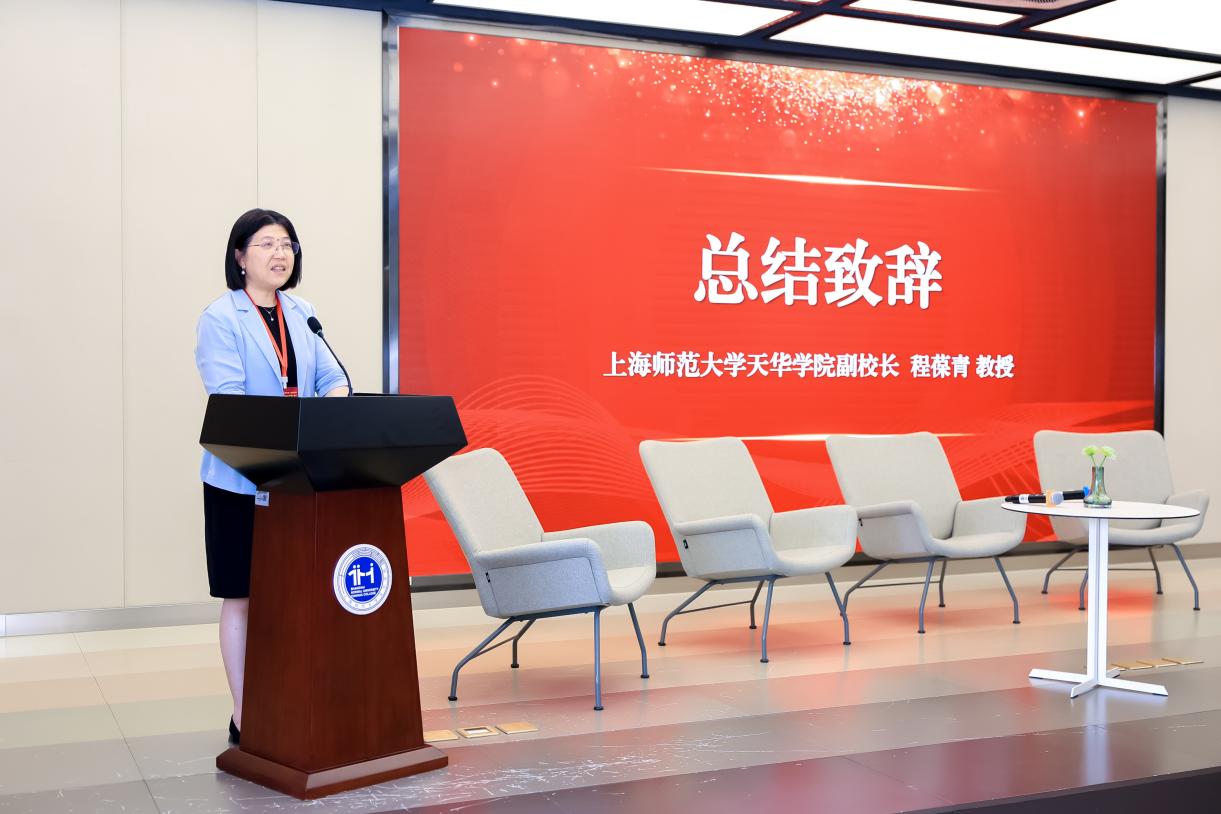 论丛总编、上海师范大学天华学院副校长、商学院院长程葆青教授在全体参会者激情高涨的氛围中发表了闭幕总结致辞。程葆青指出本届会议是一次思想盛宴和合作盛会,也是天华学院养老金融研究升级和跨界合作的新起点。期待携手社会各方共同写好、演好养老金融这篇大文章、大乐章。