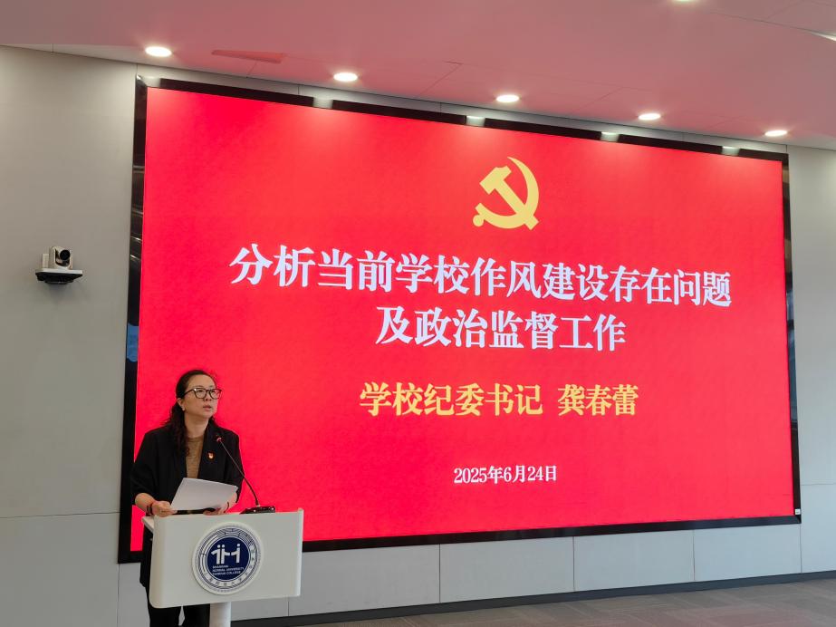 龚春蕾分析当前学校作风建设存在问题及政治监督工作,剖析典型案例,领学警示教育材料,并结合学校干部查摆问题情况,引导全校党员干部时刻保持清醒头脑,筑牢拒腐防变思想防线,部署推进政治监督具体化常态化,为学校事业高质量发展营造风清气正的政治生态和育人环境。