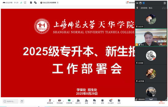 为提前统筹2025级专升本及新生入学相关工作,明确各环节职责与要求,确保后续迎新、管理及服务工作的有序推进,学保处于2025年8月29日10:00在月270召开2025级专升本、新生辅导员工作线上部署会。招生办主任包静波、学保处处长刘洪伟、学保处副处长杨央、冯建刚,二级学院党总支书记及全体2025级专升本、新生辅导员参会。会议由学保处处长刘洪伟主持。
