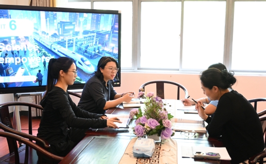 在备赛过程中,团队成员分工明确、携手努力,每位老师从中受益良多。参赛除了靶向好的成绩,更多地是在备赛过程中团队成员间的探讨、分享与收获。这次备赛让老师们尝试去挖掘更科学、更有效、更有趣的教学方法;引导老师们去思考教育技术如何更好地支撑课堂,如何更好地赋能评价;也让团队成员在共同的努力中意识到团队合作的重要性,每位老师都发挥自己的所长,将备赛内容最大化地延展到边界,极大地提升了备赛效率,优化了成果输出。在教学展示环节,童佳蕙老师将团队的教研成果立体化。其通过不断地演练课堂流程,细致打磨每一个互动节点,力求实现语言输入与输出的有效结合。在授课过程中,童老师以富有感染力的教学风格充分调动学生积极性,通过小组协作、即兴演讲、AI 辅助学习等多种方式,引导学生从个人经历出发,探讨科技如何重塑日常生活与国家面貌。天华学院的同学们也表现出高度的参与热情与良好的综合素养。他们积极配合课堂任务,主动思考、踊跃发言,在个人展示和小组讨论中展现出优秀的语言表达能力与批判性思维。整堂课节奏流畅、气氛活跃,成功实现了预设的教学目标。