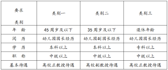 学校现面向全国招聘年富力强、有职称、有高水平幼儿园管理经验的园长作为特聘双师型教师,担任学前教育本科专业教学(含理论和实践)、“三双”教师带教、在线儿童教育产品研发及附属幼儿园管理等工作,并有机会赴美国伊利诺伊大学香槟分校、阿拉巴马大学等国外合作大学培训和访学。基本要求如下:
